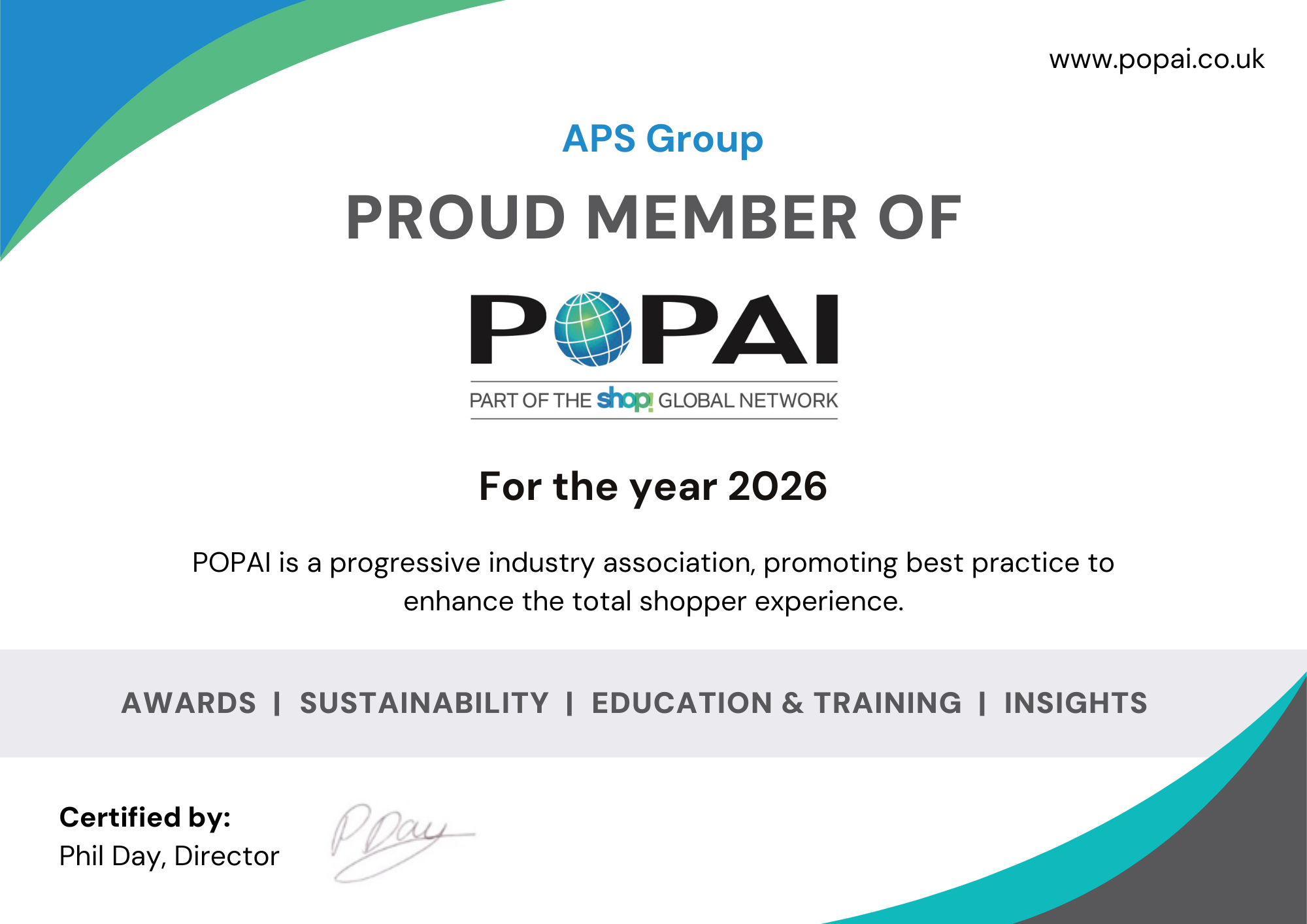 APS are proud members of POPAI (part of the Shop global network), a progressive industry association, promoting best practice to enhance the total shopper experience.